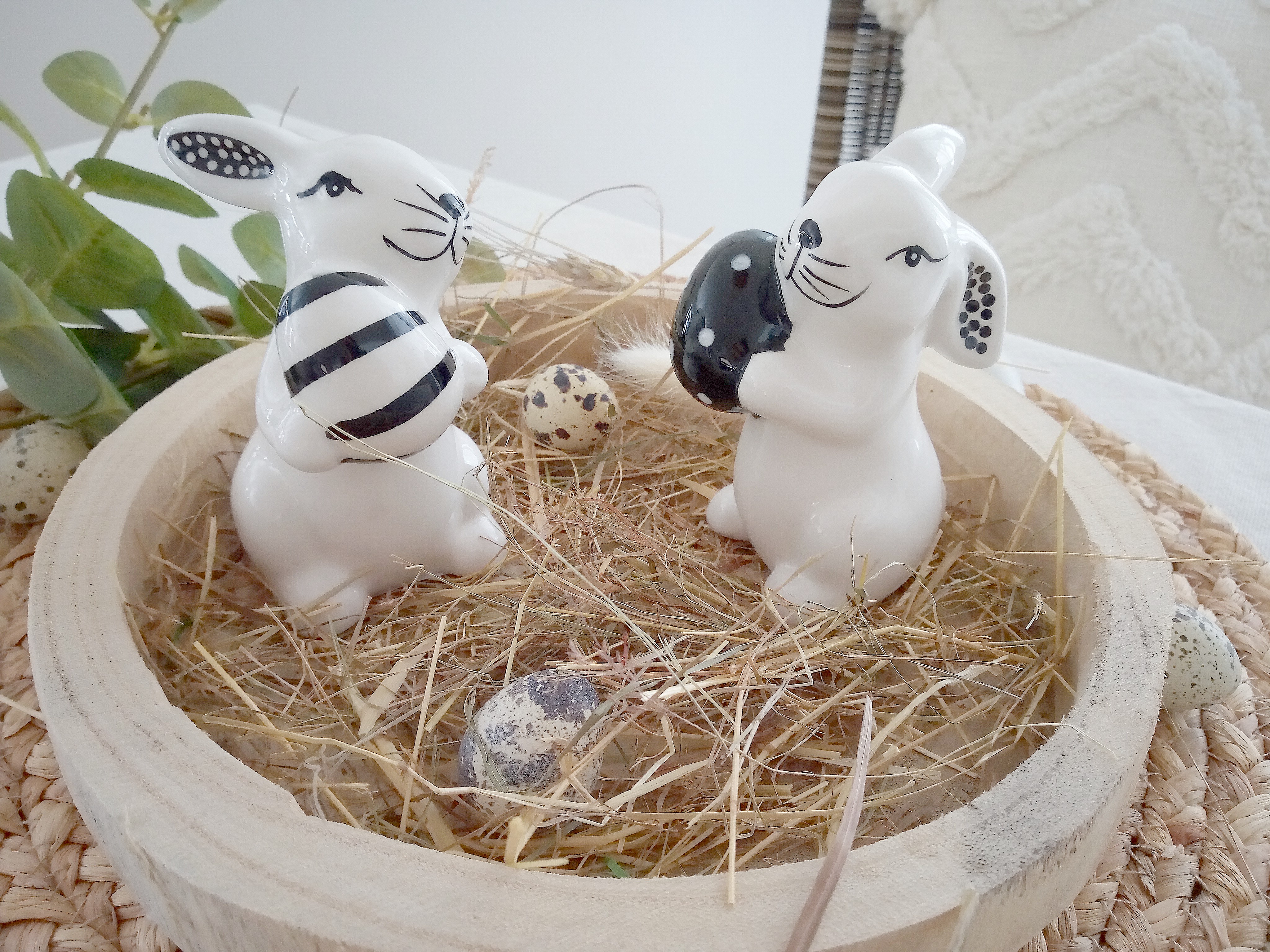 2er Set Hasen mit Osterei schwarz weiß