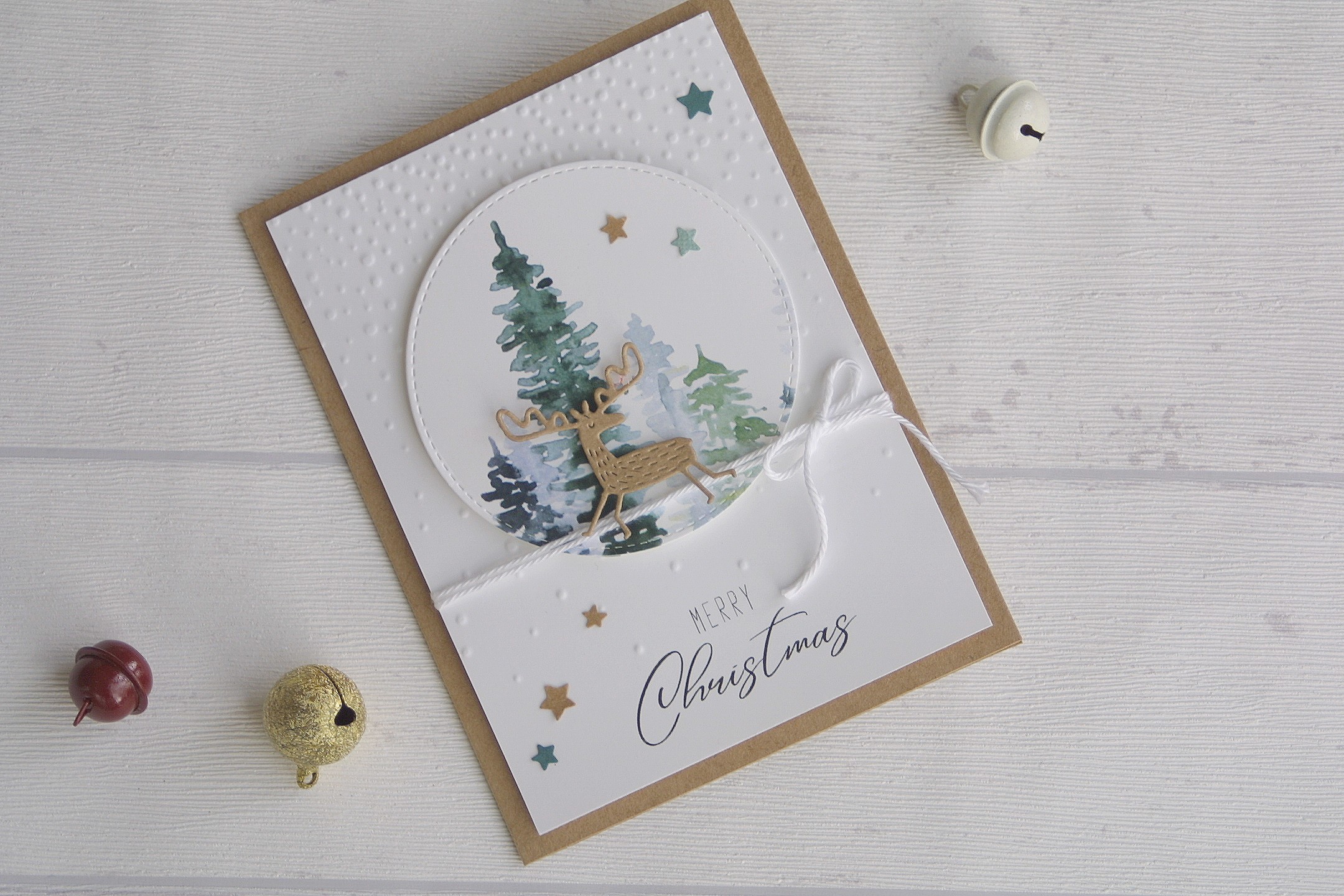 Preview: Handgemachte Weihnachtskarte Wald Hirsch